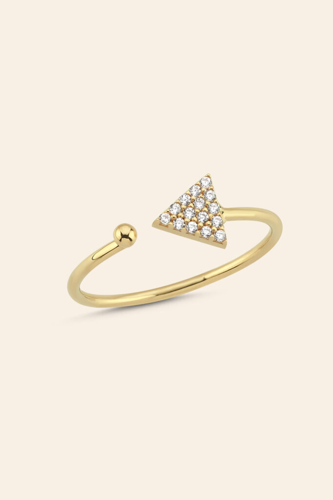 14 Ayar Sarı Altın Taşlı Geometrik Tasarım Yüzük