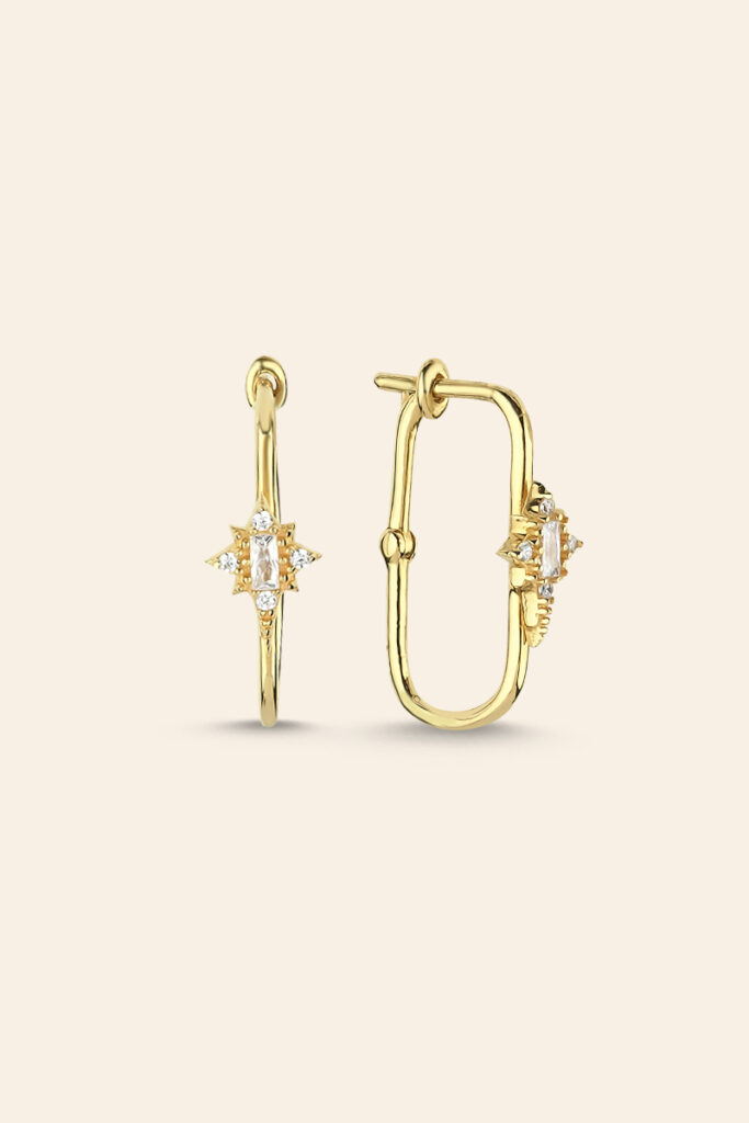 14 Ayar Sarı Altın Taşlı Polaris Küpe