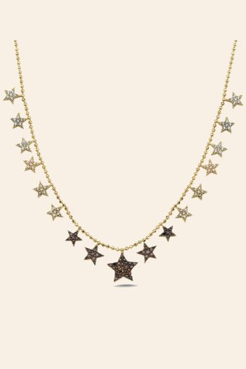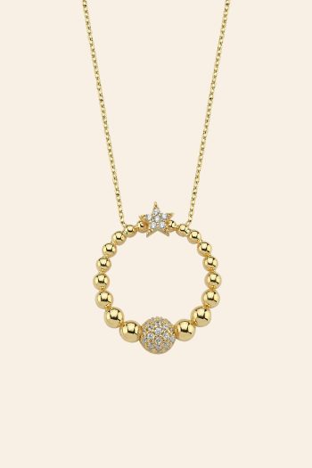 14 Ayar Sarı Altın Sallantılı Taşlı Yıldız Kolye