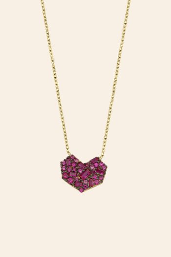 14 Ayar Sarı Altın Renkli Taş İşlemeli Kalp Kolye