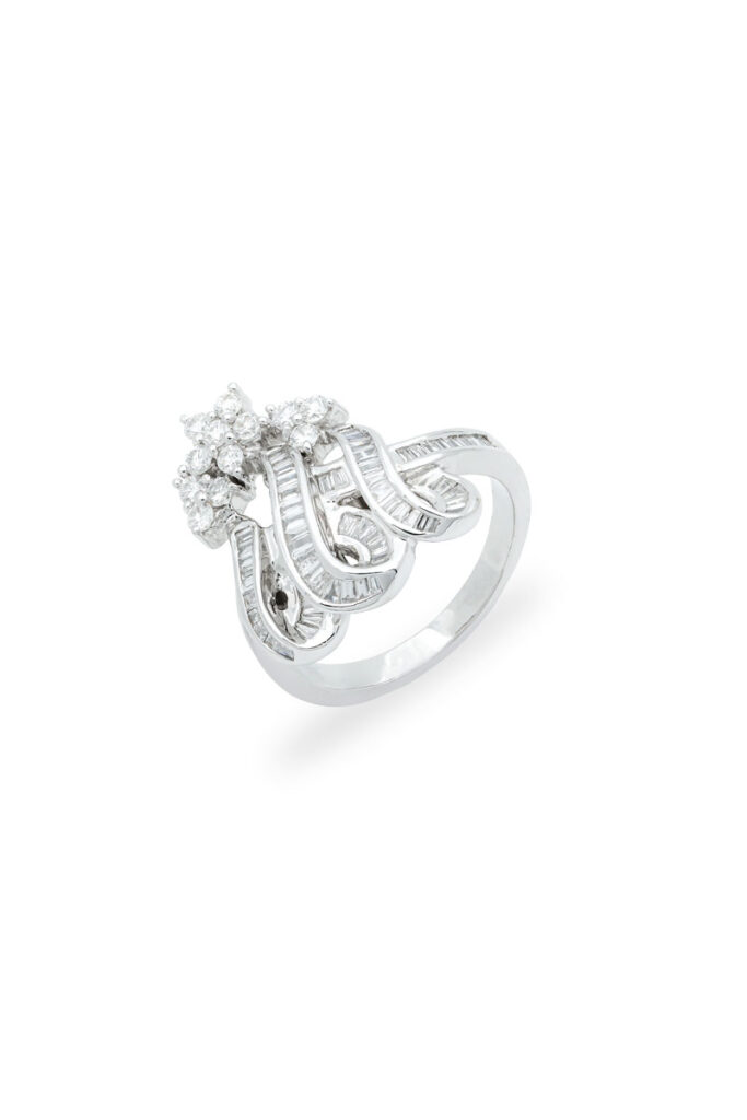 18 Ayar Beyaz Altın Çiçek Tasarım Pırlanta Yüzük
