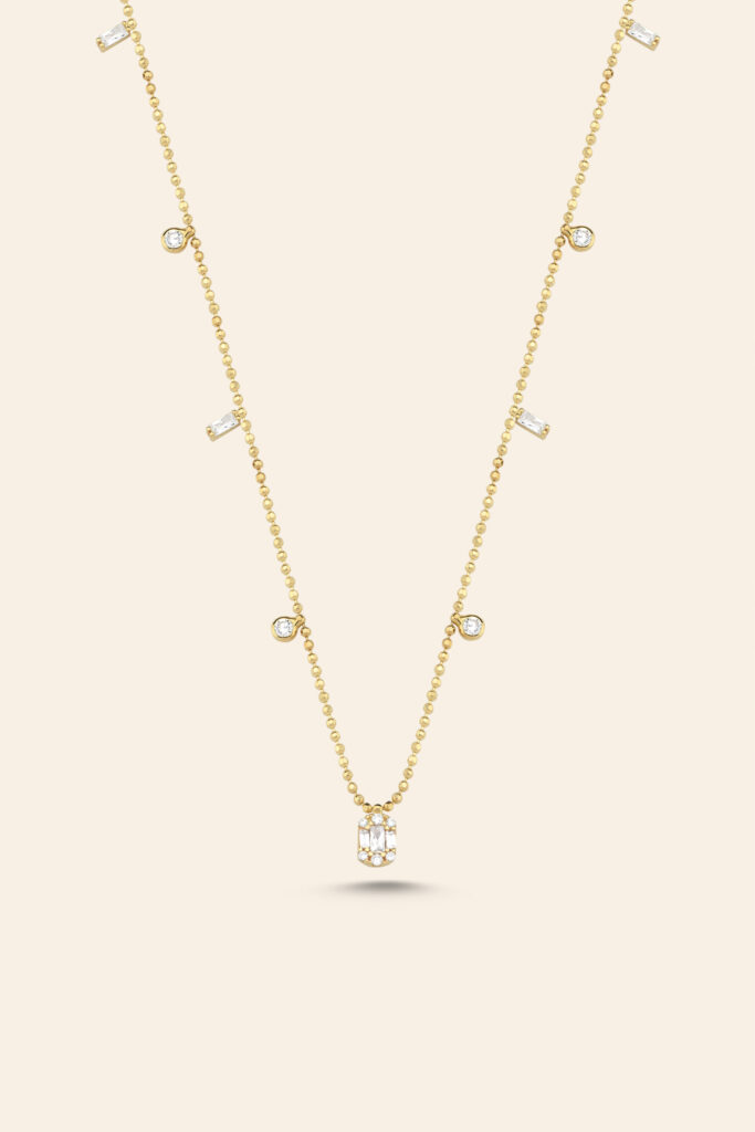 14 Ayar Sarı Altın Baget Taşlı Zarif Tasarım Kolye