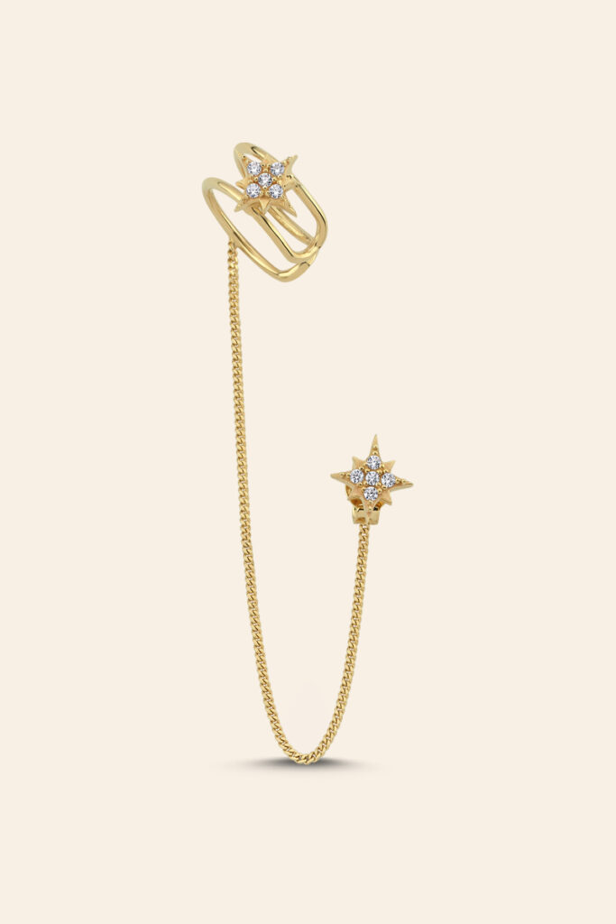 14 Ayar Sarı Altın Polaris Tasarım Zincirli Tek Küpe
