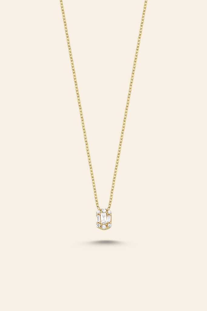 14 Ayar Sarı Altın Baget Taşlı Zarif Tasarım Kolye