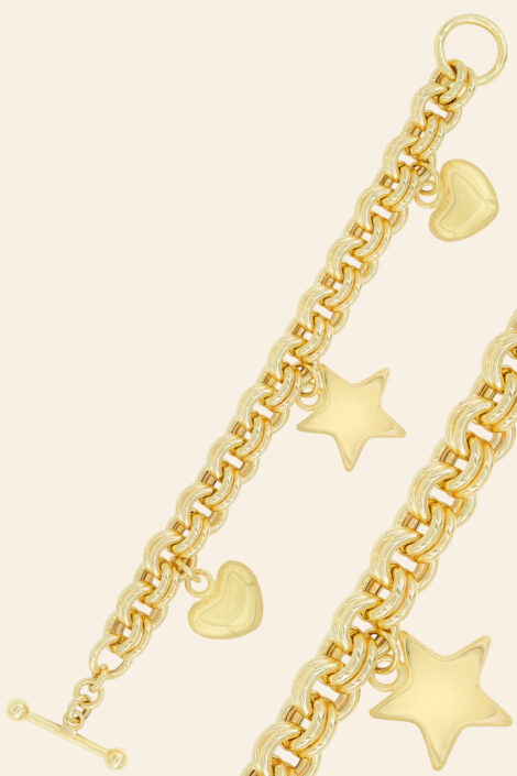 14 Ayar Sarı Altın Kalp ve Yıldız Figürlü Koleksiyon Bileklik