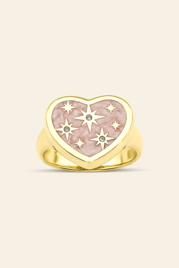 14 Ayar Sarı Altın Yıldız Motifli Kalp Yüzük